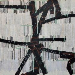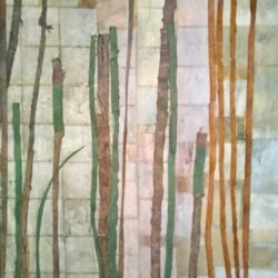 - ‘stillness in motion’ diptych (left panel only) collage w distemper on panel 72×96″
